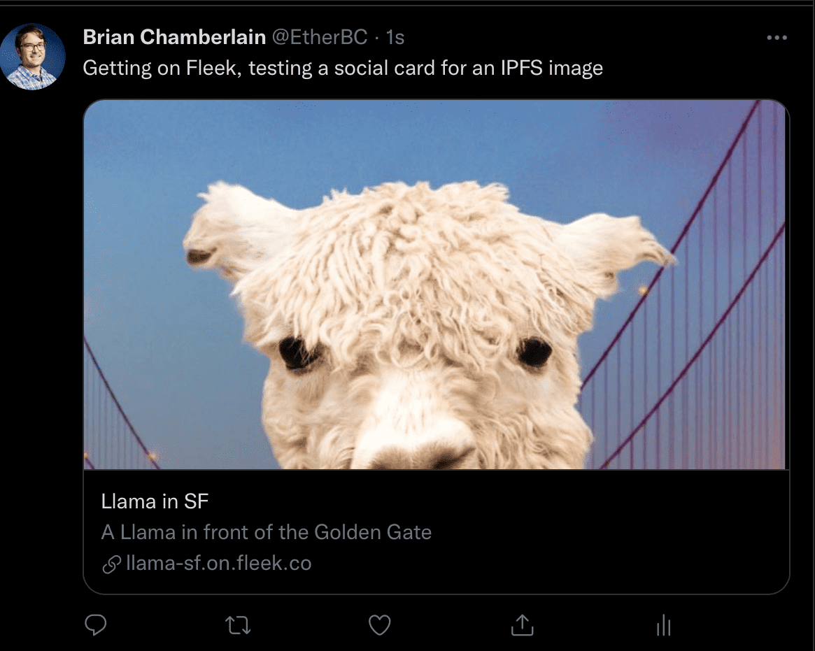 You can also get custom subdomains on Fleek… which I did. The page now lives at llama-sf.on.fleek.co