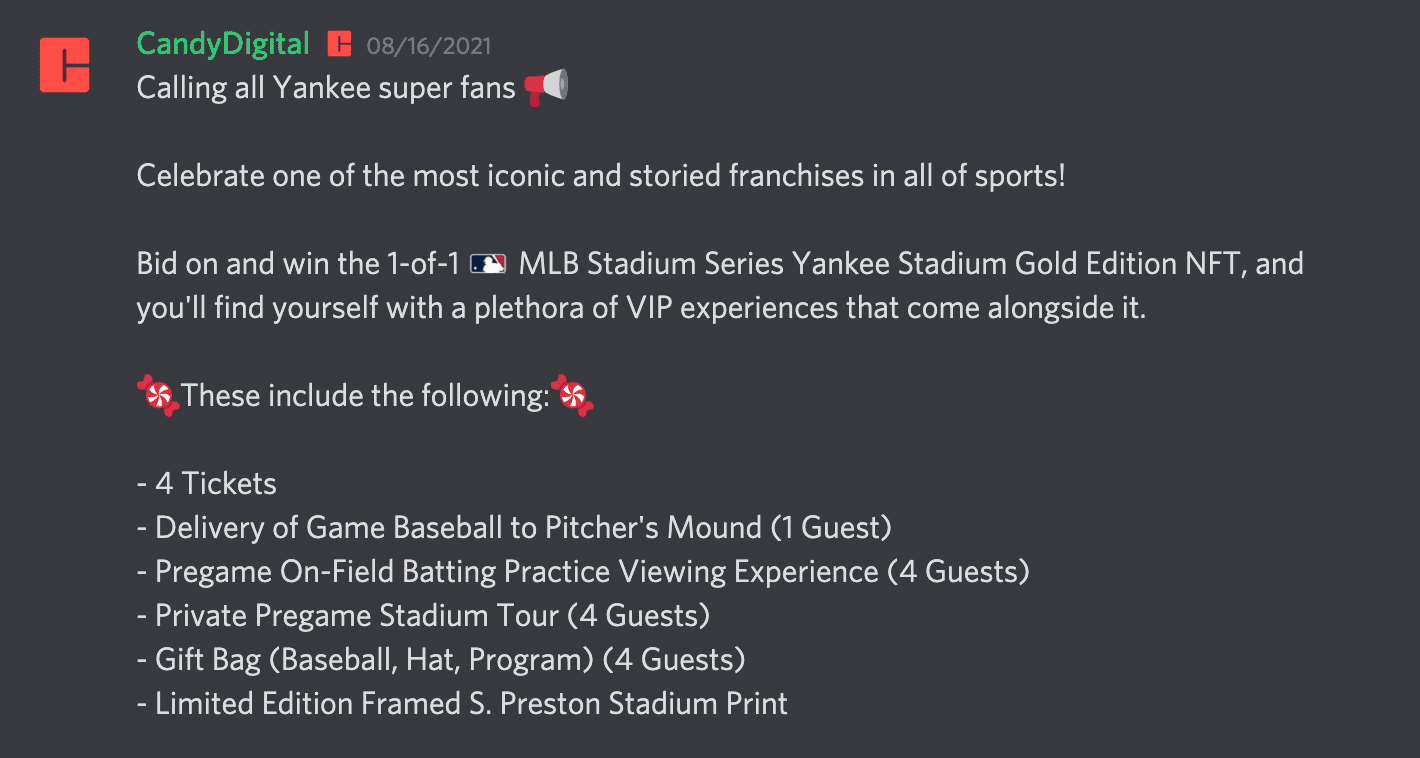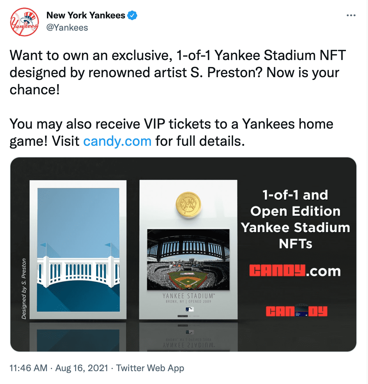 For example, the Yankees announced its launch of the Yankee Stadium NFT.