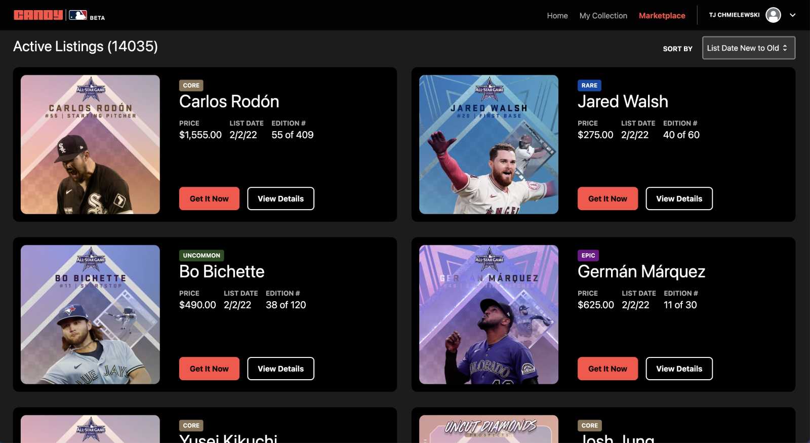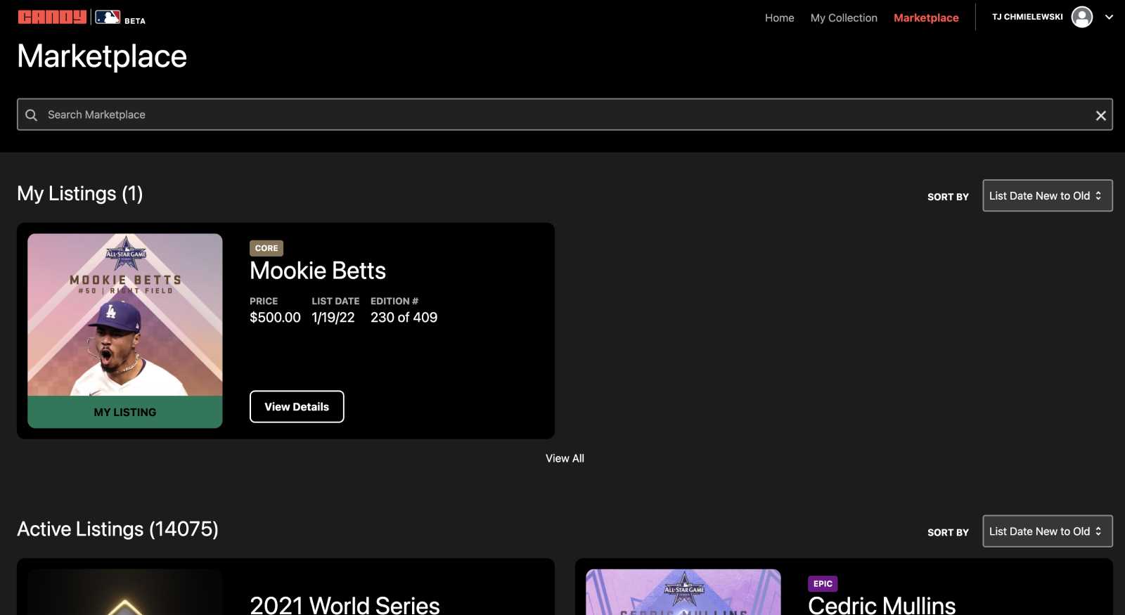 You can also place your NFTs on the marketplace for purchase. Price your NFT however you like and keep the listings up on the Marketplace as long as you like. I put a few up for grabs and found the process easy. I may have underestimated how much fans would pay for a #2 out of 30 Juan Soto Epic card. The sales went a lot better than I expected and I found myself earning money and probably could have done better if I had researched the market for a day or two. A crazy stat for Day 1 of the Candy Marketplace is that there were $1M in total sales within the first 8 hours of marketplace opening