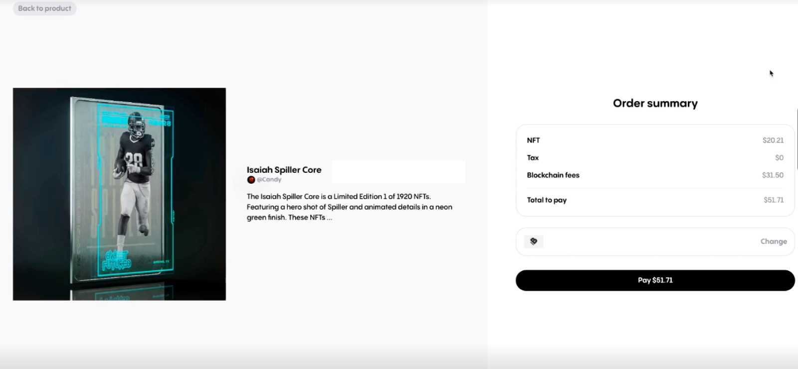 The process of buying a digital trading card has been created so that an average user can buy one with a credit card even though the underlying technology is on Ethereum blockchain. It appears that the NFTs and Marketplace were created using Bitski. Bitski is a a16z venture looking to become the “Shopify of NFTs”.